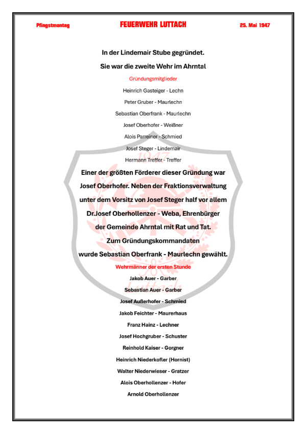 Pfingstmontag FEUERWEHR LUTTACH 25. Mai 1947